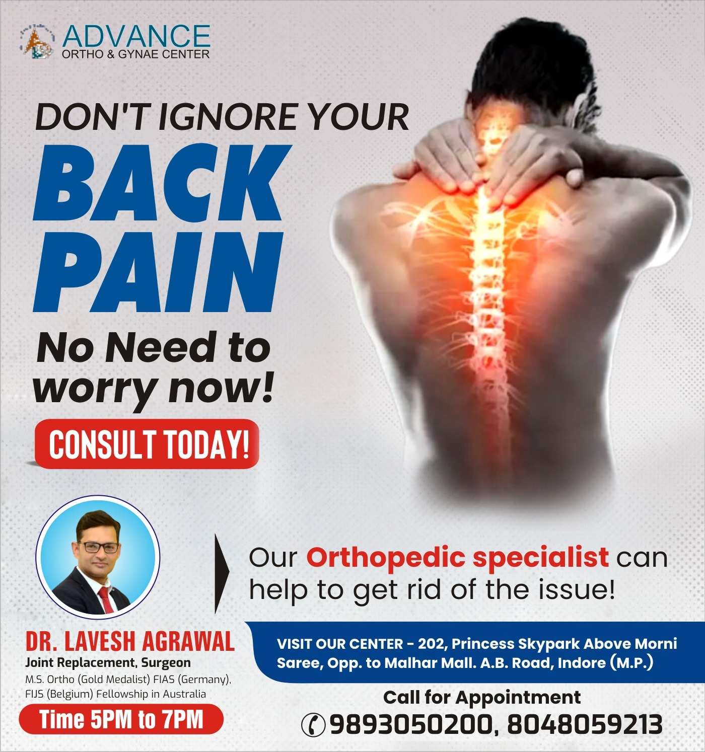If you are searching for the best doctor for back pain treatment in Indore, Dr. Lavesh Agrawal at Advance Ortho & Gynae Center is a trusted name for advanced and result-oriented care. With extensive experience in diagnosing and treating all types of back pain, including slip disc, sciatica, muscle strain, and spinal disorders, Dr. Lavesh Agrawal offers personalized treatment plans tailored to each patient’s condition.