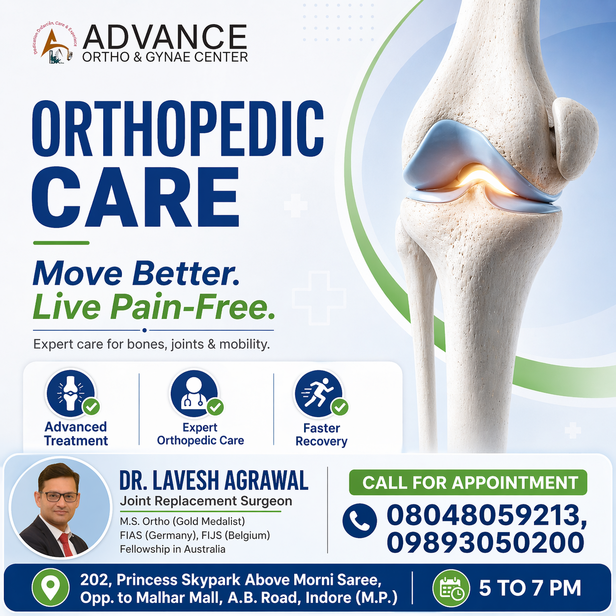 Consult Dr. Lavesh Agrawal in Indore for reliable, result-oriented orthopedic care and get back to an active, pain-free lifestyle.